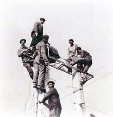 Ils se bousculaient pour monter aux poteaux a l'époque  1914 Sapeur Télégraphiste installant un poteau jumelé